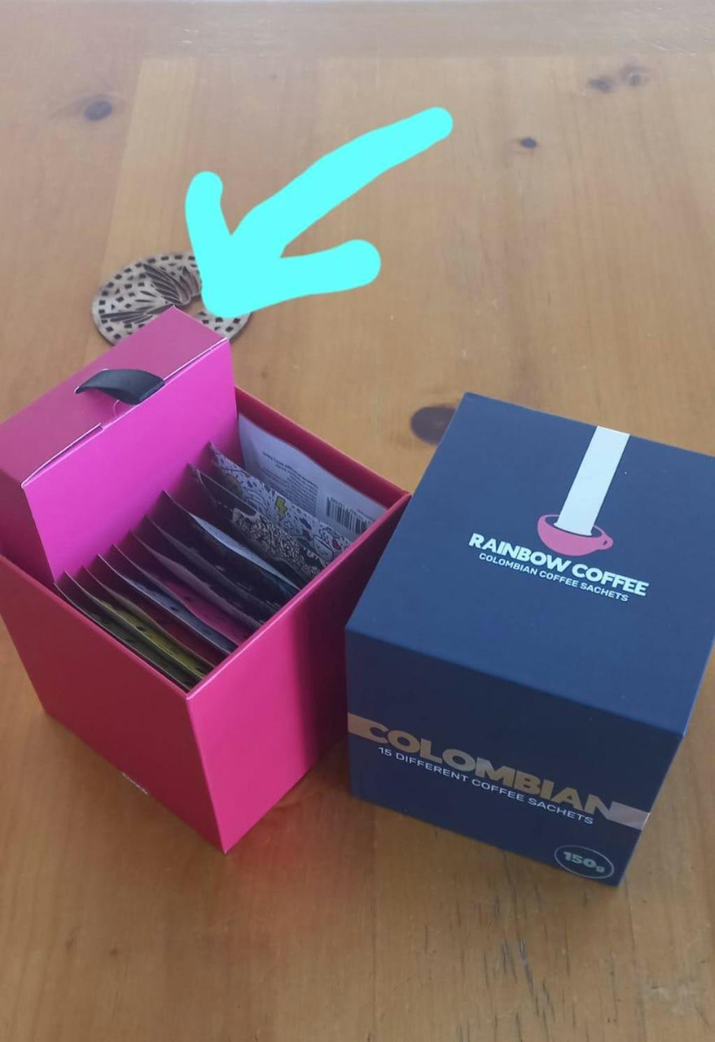 Salta a un universo lleno de color con Rainbow, esta caja contiene 15 sachets cada uno con un diseño vibrante y único, ideal para quienes buscan el regalo perfecto o desean sumergirse en una experiencia de café llena de color y sabor.