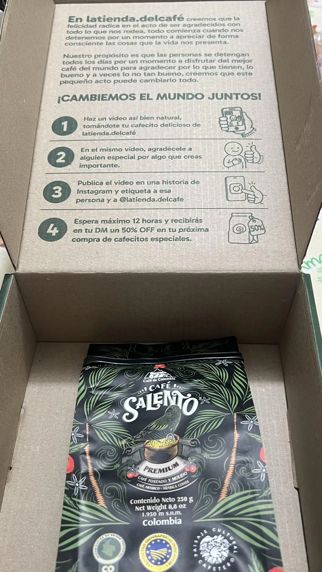 Café Salento es un café especial Colombiano que nace con la intención de denotar un café de altura a la vez de representar con cariño y respeto, la labor hacia nuestra bebida nacional. El producto es el resultado de la mejor selección de café de origen Salento (Quindío) ubicado a 1920 metros sobre el nivel del mar, perteneciente a la variedad Castillo.